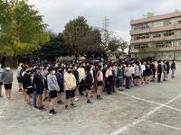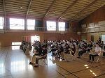体育館の中は33度以上。校長のあいさつと学年主任からの主旨説明だけは体育館で