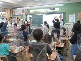 しました。本日14名の職員が児童に向けて、お別れの挨拶をオンラインで行い、最後は盛大に中庭から校庭まで