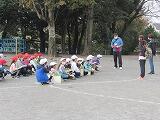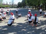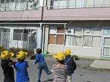校庭で体育の授業を行っていたクラスは、校庭の中央部に集まり、低い姿勢で待避。よくできていました。