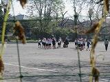 校庭の黄色い帽子の子供たちもあと数日で帽子を脱ぎます。