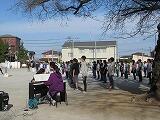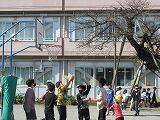 体育館の中では合唱が実現できなかったので、校庭で「旅立ちの日に」を合唱しました。校舎に声が反射し、