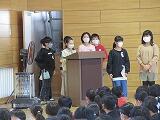 各学年の代表児童に「あゆみ」を渡し、校長からの話では頑張った点を確認させ、春休みの指導をしました。
