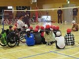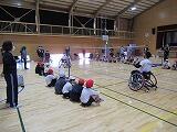 学級ごとに、みんな1度は競技用車椅子に乗ってバドミントンの打ち合いをしました。