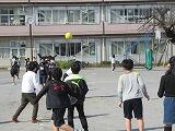 今、校庭には、ボール投げのコートが2面書かれています。