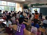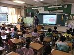 児童たちは真剣に講師の警察の人たちの話を聞いていました。