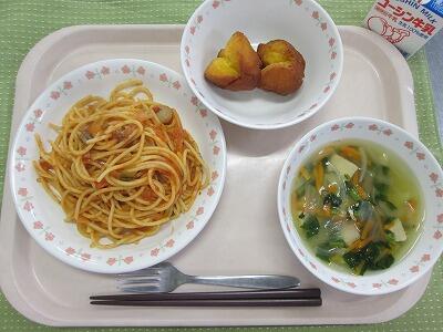 牛乳・スパゲティナポリタン・ポテトスープ・かぼちゃドーナッツ