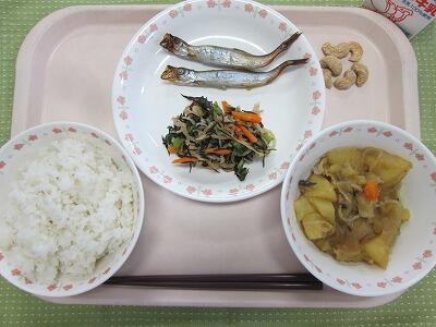牛乳・ごはん・焼き子持ちししゃも・切干大根のあえもの・肉じゃが・メープルカシューナッツ