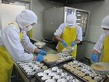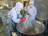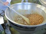 いなりずしは全校分を油揚げで包むのは難しく、甘じょっぱく煮た油揚げを酢めしに混ぜ合わせて作りました。すいとん汁の「すいとん」は米粉と白玉粉にだし汁を加えて、給食室で作りました。つるっとした食感がおいしかったです。
