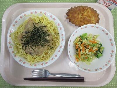 牛乳・スパゲティ大豆ソース・柏野菜のサラダ・スイートポテトパイ