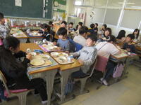 今週は今年度最後の週となり、6年生にとっては小学校給食の食べ納めになる。その二日目は、給食だからこそ美味しい鯖の味噌煮である。たくさんの鯖を、味噌とショウガとネギをたっぷりといれた大きな鍋で煮込む、だから身がしっかりとしながら、味が染みこみ、鯖の旨さと味噌とねぎとショウガが絶妙なハーモニーになるのである。今日の味噌煮はまさにその通りで、白いご飯によく合っている。そして、今日のお汁はきりたんぽ汁。秋田の郷土料理のきりたんぽが、お米の存在感がしっかりとしたきりたんぽで、粘り気もありとても美味しい。そのきりたんぽを引き立てる、出汁がしっかりとした薄味の汁が素材の味を引き出している。秋田で食べたきりたんぽ鍋によくにた味で、野菜の素材の味もしっかりと楽しめる汁である。からし和えはもやしと小松菜のシャキシャキ感が生きる味で、味のバランスもよい。今日の柑橘はネーブルオレンジで、甘さとジューシーさがよい柑橘であった。