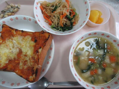 11月20日 ピザトースト ポトフ 切り干し大根のサラダ もも 大豆小魚