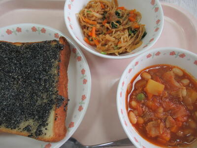 9月5日 セサミトースト ポークビーンズ 切り干し大根のサラダ