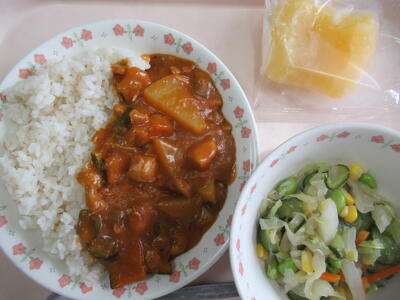 7月17日(水)夏野菜のカレー カラフルサラダ 冷凍リンゴ