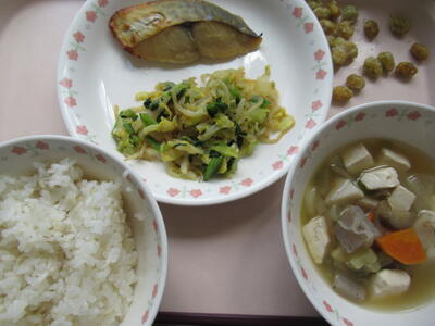 4月17日(水)鰆の西京焼き からしあえ けんちん汁 カリカリ大豆