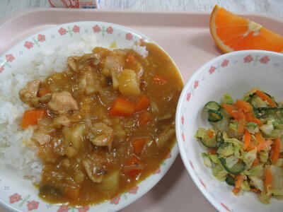 4月22日(月)チキンカレーライス ゴマ風味サラダ 清美オレンジ
