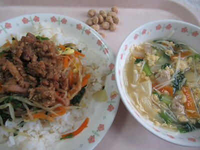 4月23日(火)ビビンバ ビーフンスープ きなこ大豆