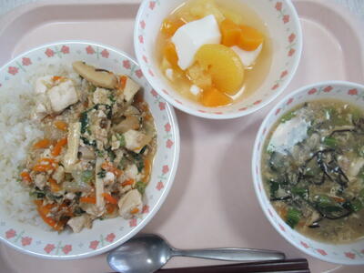 6月27日 豆腐の中華丼 中華風ひじきのスープ 杏仁豆腐