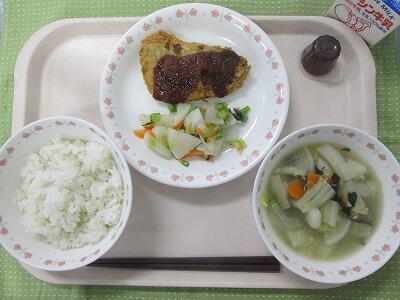 牛乳・ごはん・あじフライ・かぶの酢のもの・米粉のすいとん汁・ひとくちぶどうゼリー