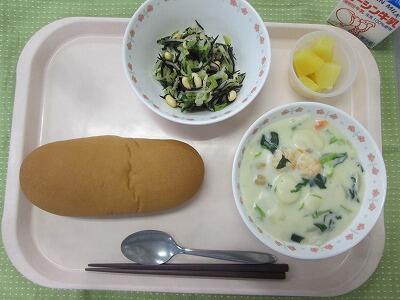 牛乳・ブランコッペパン・大豆とひじきのサラダ・冬野菜とニョッキのクリームシチュー・パイン缶