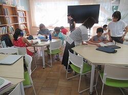 夏休みおもしろチャレンジ教室1日目は、6年生を対象にした算数教室と4年生以上を対象にした、自由研究教室と調べる学習教室です。伴走をしてくださるのは、図書館指導員・理科支援員のみなさんと県立柏高校の高校生22名のみなさんです。