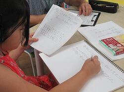 6年生を対象にした算数教室は今日が最終日。算数プリントに取り組む6年生を補佐する高校生のおかげで、算数が楽しそうです。