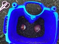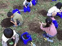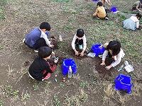 あさがおで使った土に元気な土の素をまぜ、土の再利用をし、いよいよ球根を植えました。
