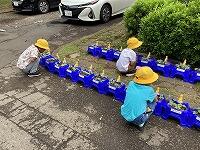 子供たちは、登校後や大休憩にペットボトルじょうろに水をくみ、愛おしそうに水をあげています。