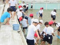 中に入って、いきいきとやご取りをする子もいれば、プールサイドで待機する子もいました。