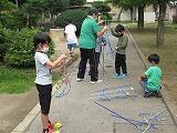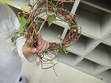 1年生の朝顔の蔓を使ったリース作りの様子です。担任の他、低学年指導教員、用務員さんも手伝っていました。