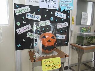 表面を顔にして、特製ハロウィンの誕生です。触りたくても子供たちは我慢して立ち止まり