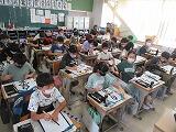 5年書写の様子。今日は、今まで一番といっていいほど、どのクラスも真剣に取り組みました。終わりのチャイムの時には全員が片付けを終わり気持ちよく授業を終えました。片付けを手伝う子がいたり、時計を意識して友達に呼びかけたりする子もいました。