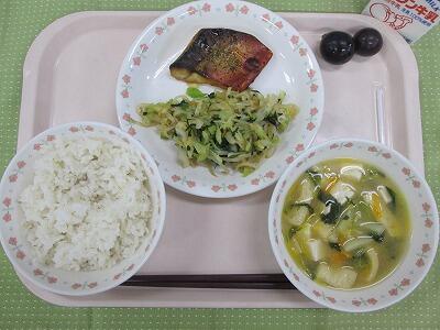 牛乳・ごはん・さばのさんしょう焼き・からし和え・菊いりみそ汁・ぶどう