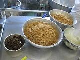 ふりかけはかんぴょうの卵とじの「だし」をとるのに使った「削り節」と「こんぶ」にちりめんじゃこや調味料を加えて給食室で作りました。