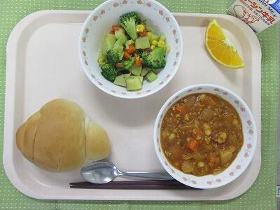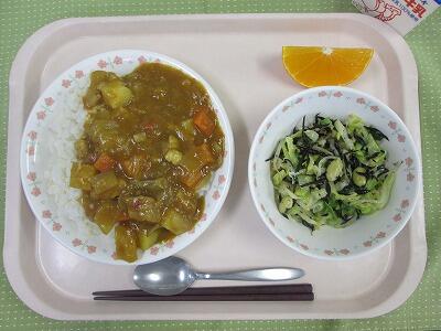 牛乳・カレーライス・ひじきと青大豆のサラダ・夢オレンジ