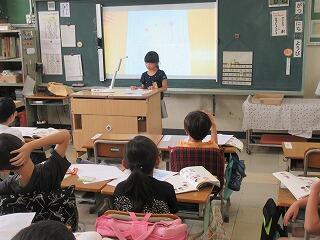 代表児童は、用意してきた「2学期の目当て」を緊張しながらもしっかり話すことができました。
