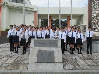 秋晴れの中、40分かけて、4年生は「青パパイヤ」の収穫に出かけました。