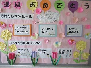 毎月、養護教諭による月ごとの掲示物があります。進級の4月は「保健室の約束と保険の先生からのお願い」自分のからだのことを知ることは大切。心もからだのうち。