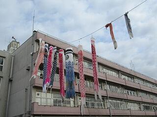 おやじの会の方々が4月早々に泳がせてくれた鯉たちが、春の大風で