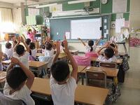今度は1年生の出番です。「ふかふかの布団だ」「白くてぬるぬる」「冷たくて気持ちいい」