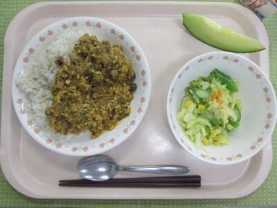 牛乳・ドライカレーライス・春野サラダ・メロン