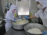 ブルーベリーは今がおいしい季節です。今日は柏市布施で栽培された生のブルーベリーを使ってマフィンを給食室でつくりました。