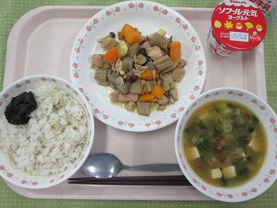 牛乳・ごはん・のりのつくだ煮・秋野菜の煮もの・なめこのみそ汁・ヨーグルト