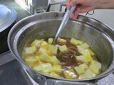 砂糖と水を茶色くなるまで、ていねいに加熱し、バターを加えてキャラメルソースを作りました。千葉県産のさつま芋を低温でじっくり揚げて、キャラメルソースをからめて仕上げます。