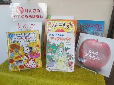 今日はアップルパイの予定でしたがオーブンの都合により「りんご煮の包み揚げ」でした。今からおいしくなる「りんご」を砂糖やレモン汁で煮て、春巻きの皮に包んで揚げました。図書室では図書の時間に「りんごのでてくるお話し」を紹介してくれました。図書室前には展示もしてくれているので、ぜひ読んでみてください。