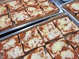 たまねぎ、ツナなどでピザソースを作り、食パンにぬってチーズをのせて焼きあげました。