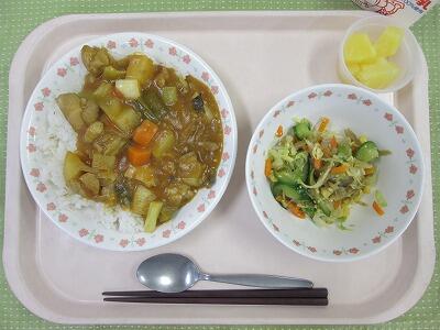 牛乳・柏野菜のカレーライス・ごぼうサラダ・パイン缶