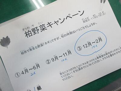 今週は給食委員会が「柏野菜キャンペーン」としてみんなに柏の野菜のいいところを伝えてくれます。地元の野菜は新鮮で栄養たっぷりです!