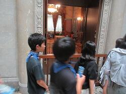 いよいよ本会議場です。議長席、事務総長席、想像していたよりも広いと感じる子が多く、450畳の広さがあること、一つ一つの丁寧な彫刻があちらこちらにあって、とても丁寧につくられていることを知って、驚く子・・・7年前の酒井根東小時代に見学で来た際は、学区にお住まいの事務総長にご案内をいただき、詳しく知ることができました。18歳から選挙権をもつ6年生。国会や選挙に関心を持って欲しいですね。
