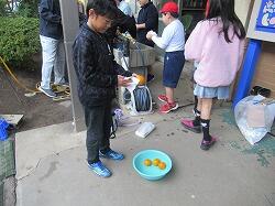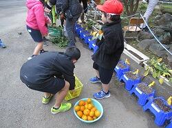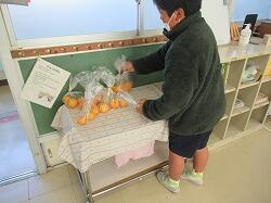 そして最後に、お礼の気持ちをしいすま学級のみんなが袋詰めしてくれた「みかん」をプレゼントしました。