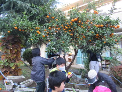 しいすま学級がみかんを収穫しています